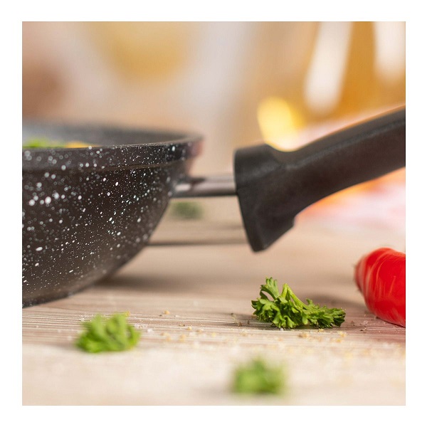 دسته ارگونومیک با طراحی خنک: راحت در دست گرفته میشود؛ مناسب انتقال از اجاق به فر (تا ۲۲۰ °C)