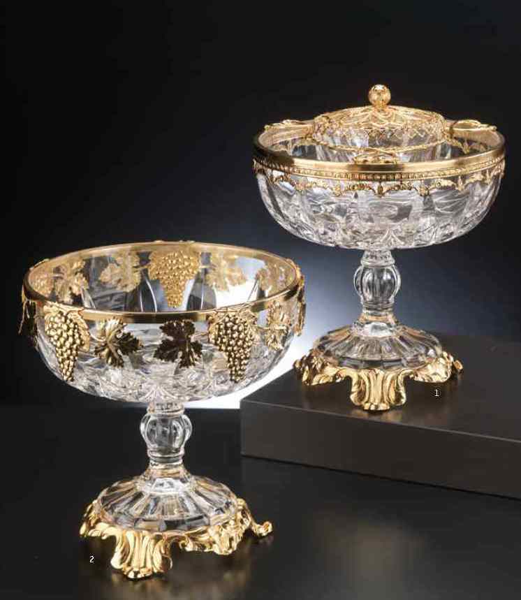 کاسه گرد کریستال پایه دار ۲۲ سانت طرح انگور برنزCAPRI